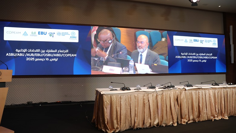 في إطار الدورة العادية 45 للجمعية العامة لاتحاد اذاعات الدول العربية التي جرت فعالياتها يومي 16 و ديسمبر 2025 في فندق ROYAL ASBU بتونس انعقد الاجتماع المشترك بين الاتحادات الاذاعية الإقليمية: